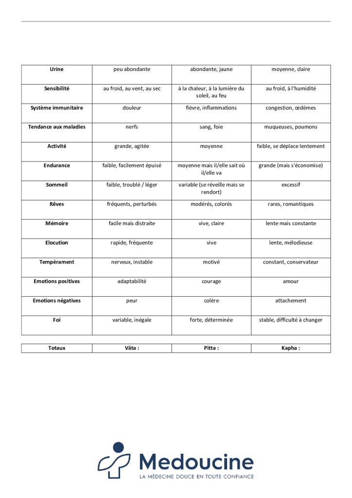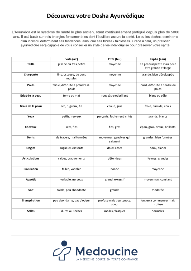 Vous souhaitez également découvrir votre dosha ? Voici un test pour vous permettre de savoir lequel des 3 est dominant chez vous !