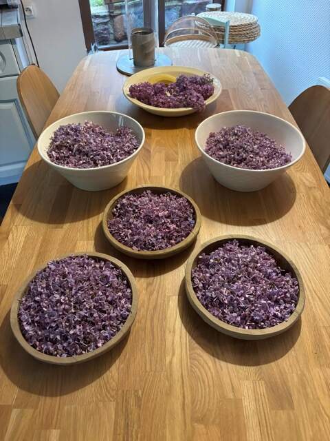 - Fleurs fraîches de lilas, cueillies de préférence le matin et par temps sec (évitez les jours humides)