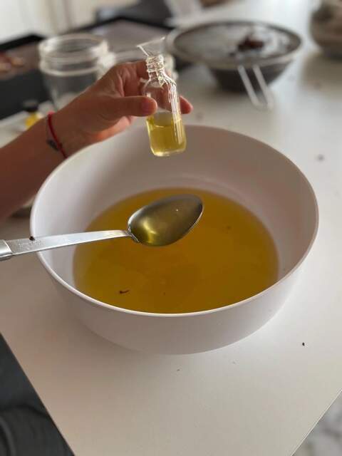 À la fin de la macération, filtrez le mélange à l’aide d’une gaze propre. Pressez bien les fleurs pour récupérer tout le liquide. Vous obtiendrez une huile parfumée, légèrement colorée, à la texture douce.